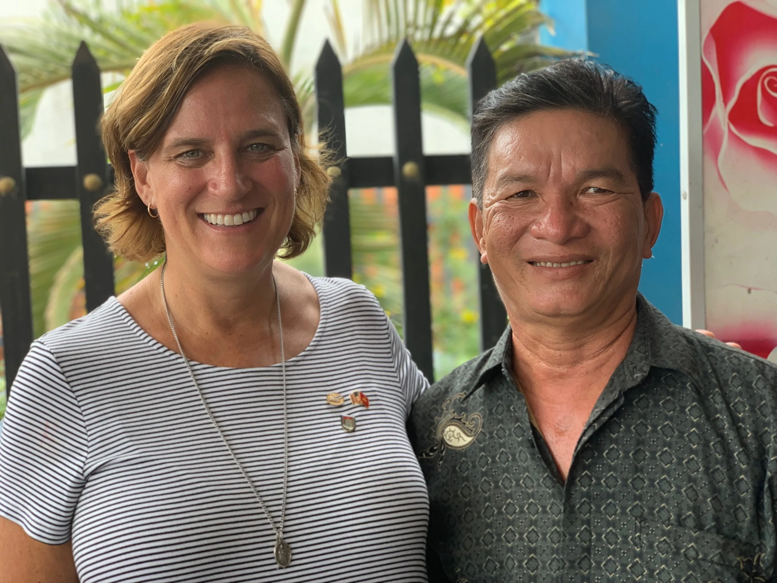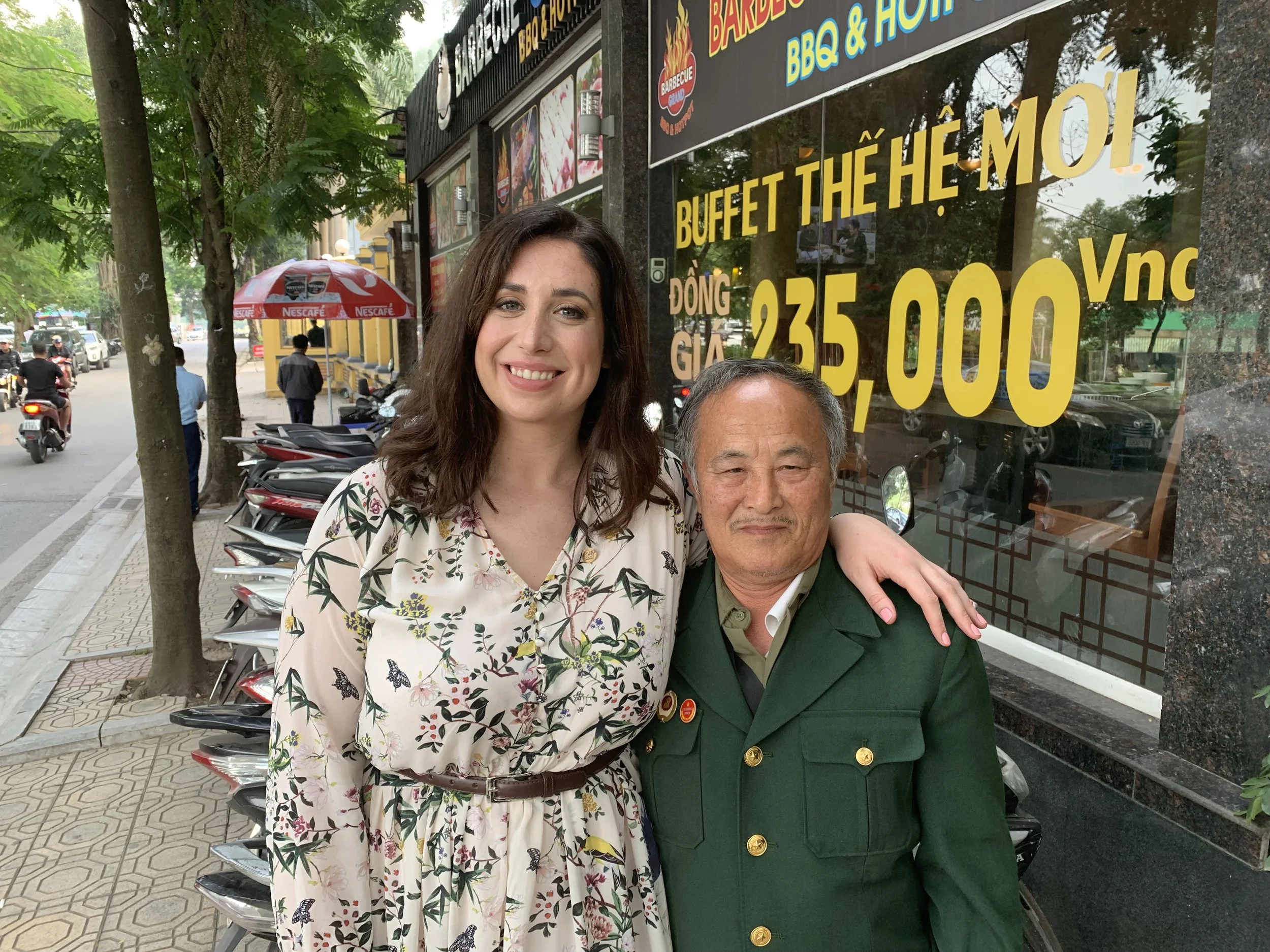 Nora Kubach, the editor and writer of The 2 Sides Projectdocumentary film, with American/Vietnam War veteran Nguyen Van Thiep. Thiep lost his