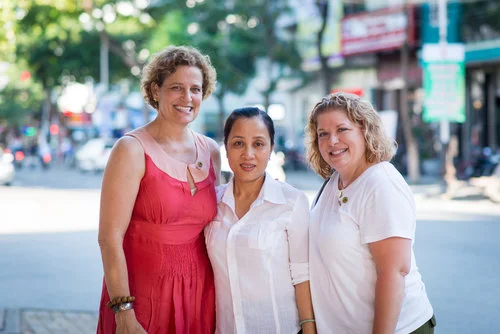 Margot Carlson Delogne, left, and Patty Young Loew, right, with Thi Le Phi. All three daughters said their mothers never remarried because they had found their one love in their fathers. They met in Da Nang, near the site where Patty's father was killed on March 11, 1969.