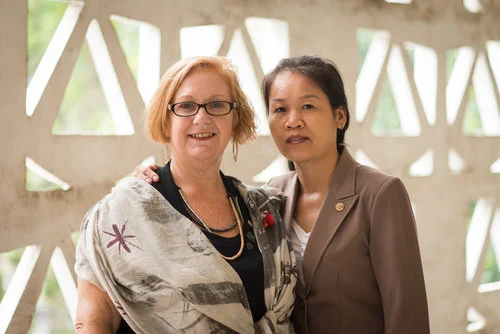 Nguyen Thi Lan and Debbie Eller. Lan has three martyrs in her family, including her father, who fought against the French and the Americans and