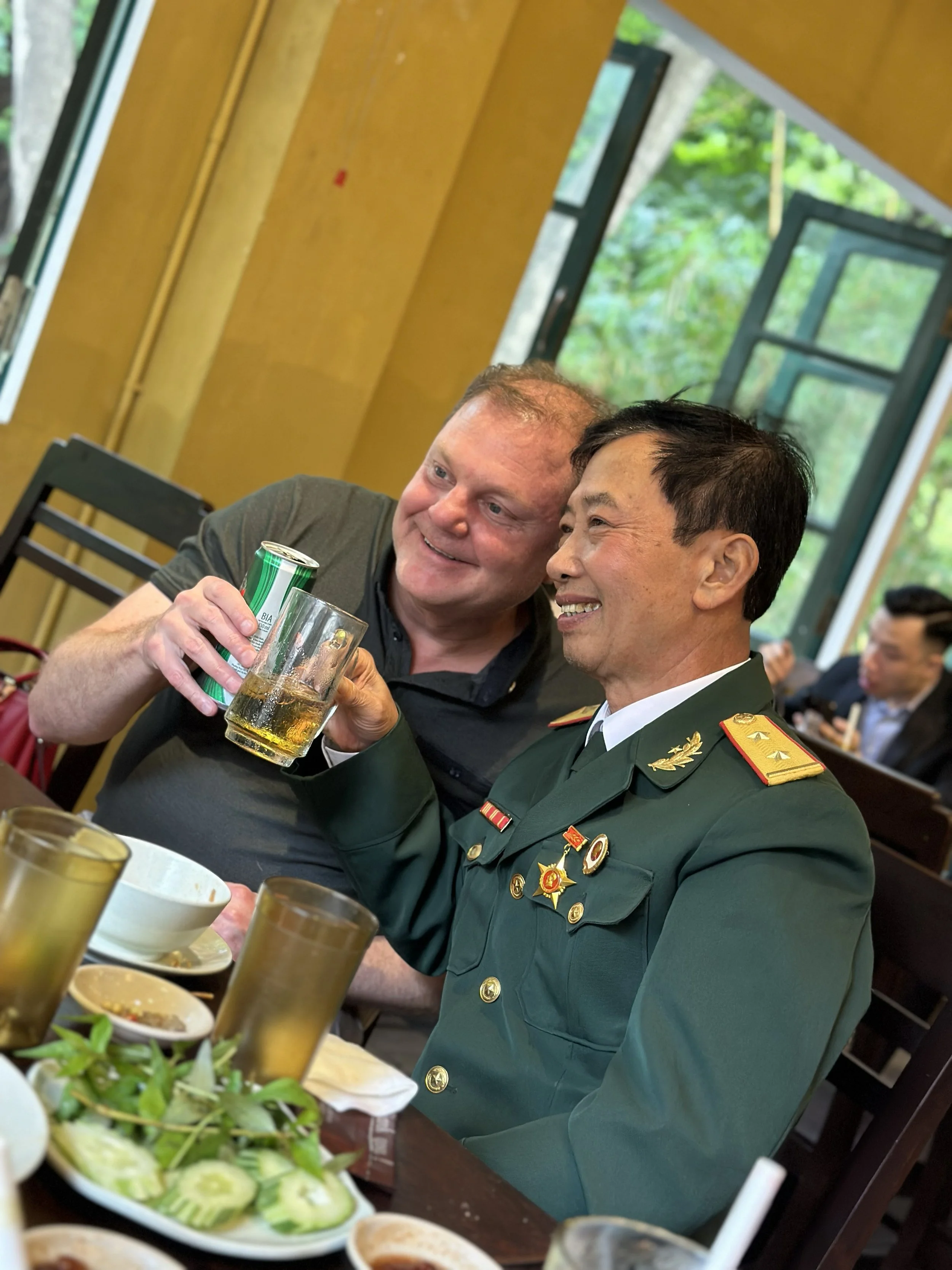 Mike Walling and Hoang Thi Kim Thanh share a beer after an emotional 2 Sides Project meeting in Hanoi. Mike’s father, Lt. Col. Charles Walling, was killed in August 1966. Mike was born a few months later, so he never got to meet him. Thanh said he never had much of a chance to say “Dad” in his life because his father was killed when he was six years old. He had tears in his eyes when he said that he hopes that the peace between the United States and Vietnam “will last forever.”