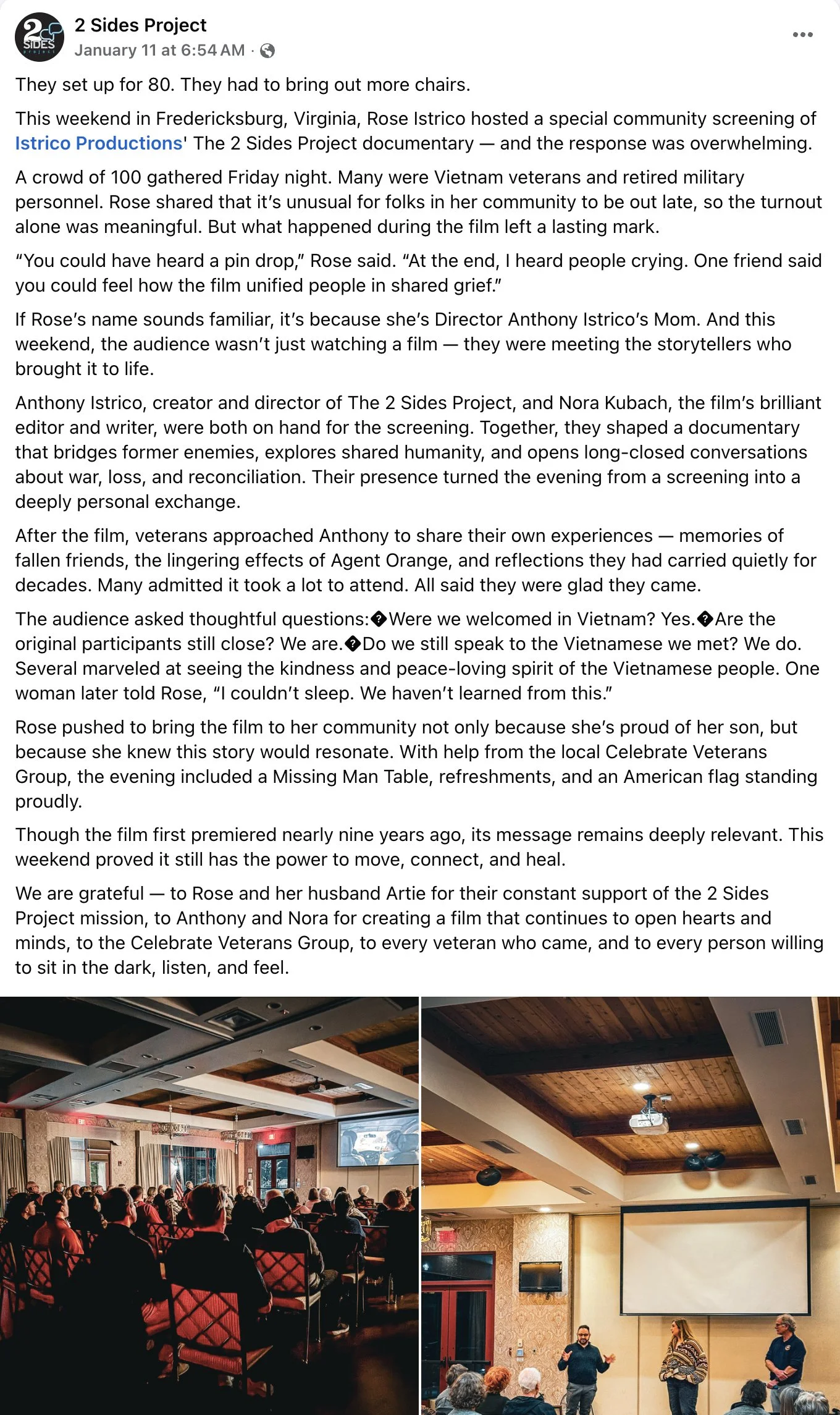 The 2 Sides Project documentary was one of six films from Gold Star daughters and sisters featured at an all day screening event in Washington, DC. The films use powerful storytelling to share a greater understanding of the effects of the Vietnam War and included The 2 Sides Project, Blood Road, Sijan, Gold Star Children, They Were Our Fathers and He’s Only Missing.